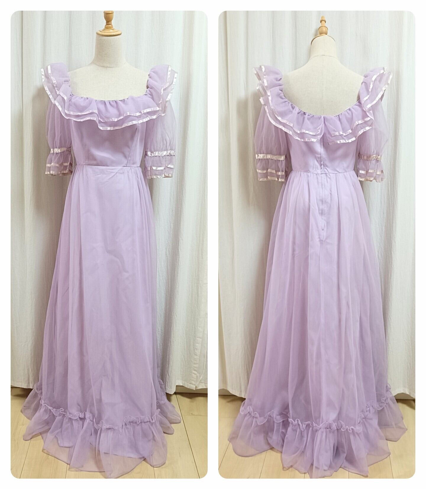 ヴィンテージフリル襟のラベンダーカラーが可愛いクラシカルドレス。