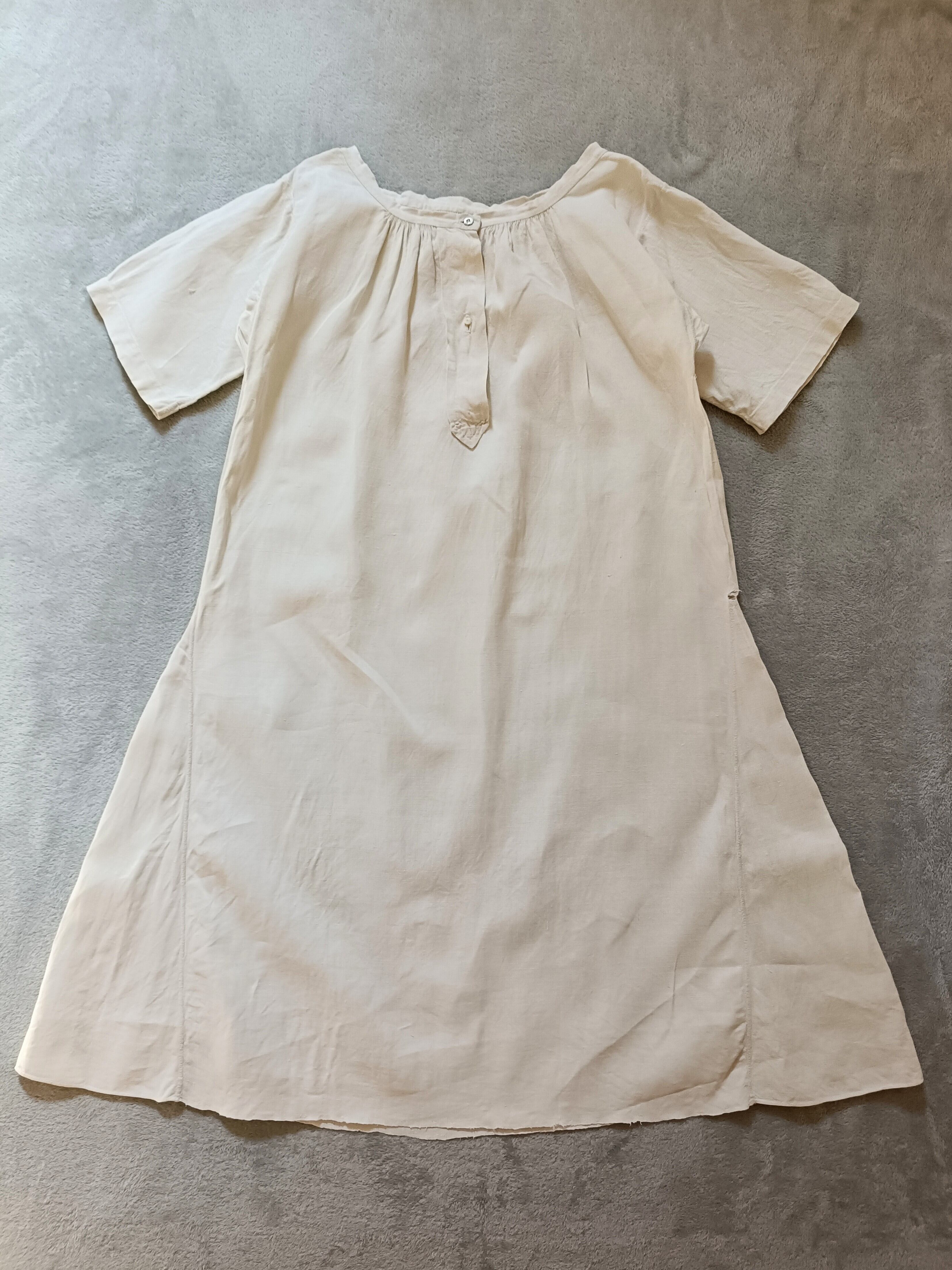 100年前のフレンチスモックは、一切生地を無駄にせず洋服の形にしていて、現在の服のパターンとは違い、物を大事にする美しい直線の構造になっています。