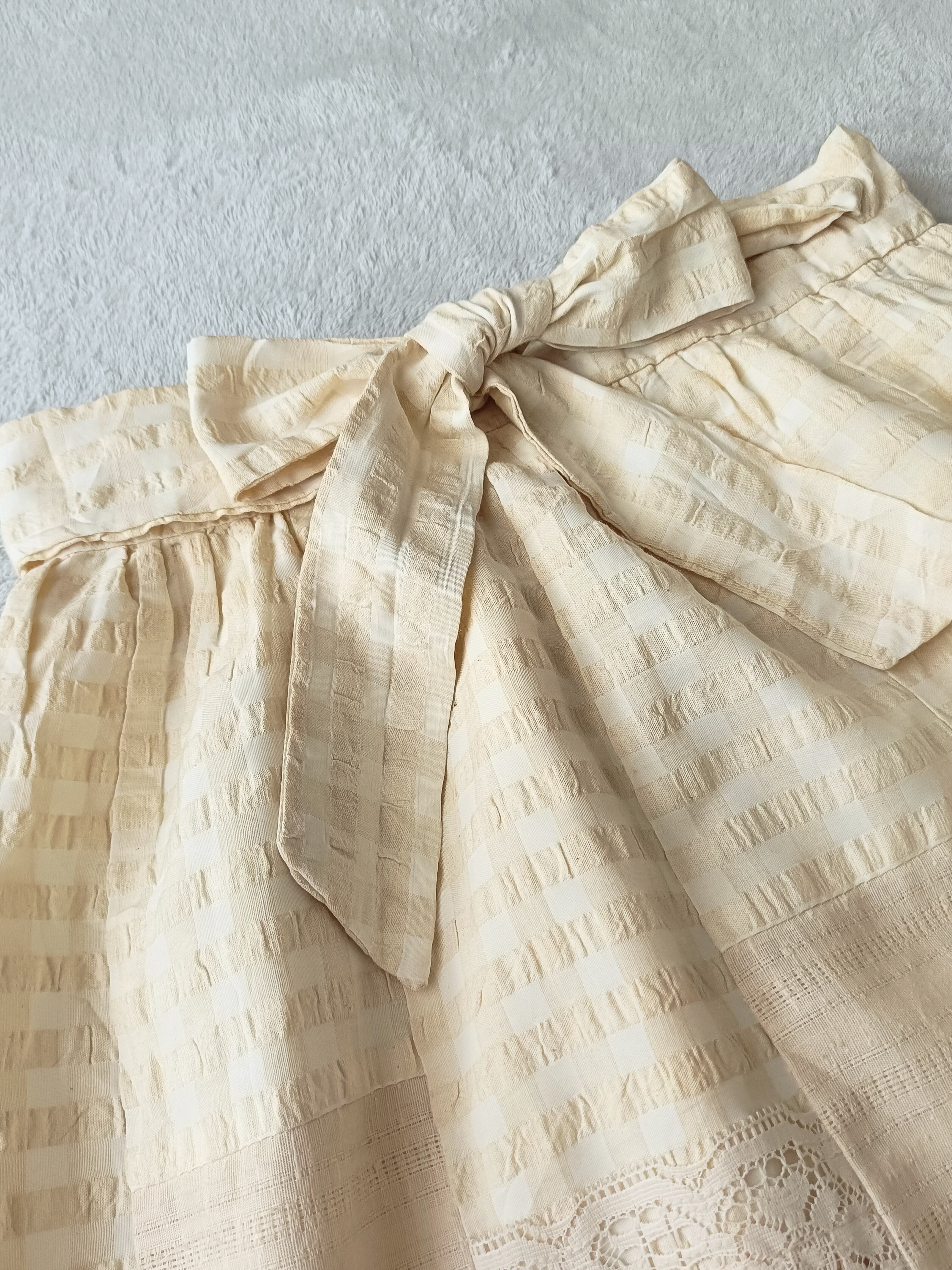 ウエストはリボンで留めるタイプになります。そのためウエストはフリーサイズです。