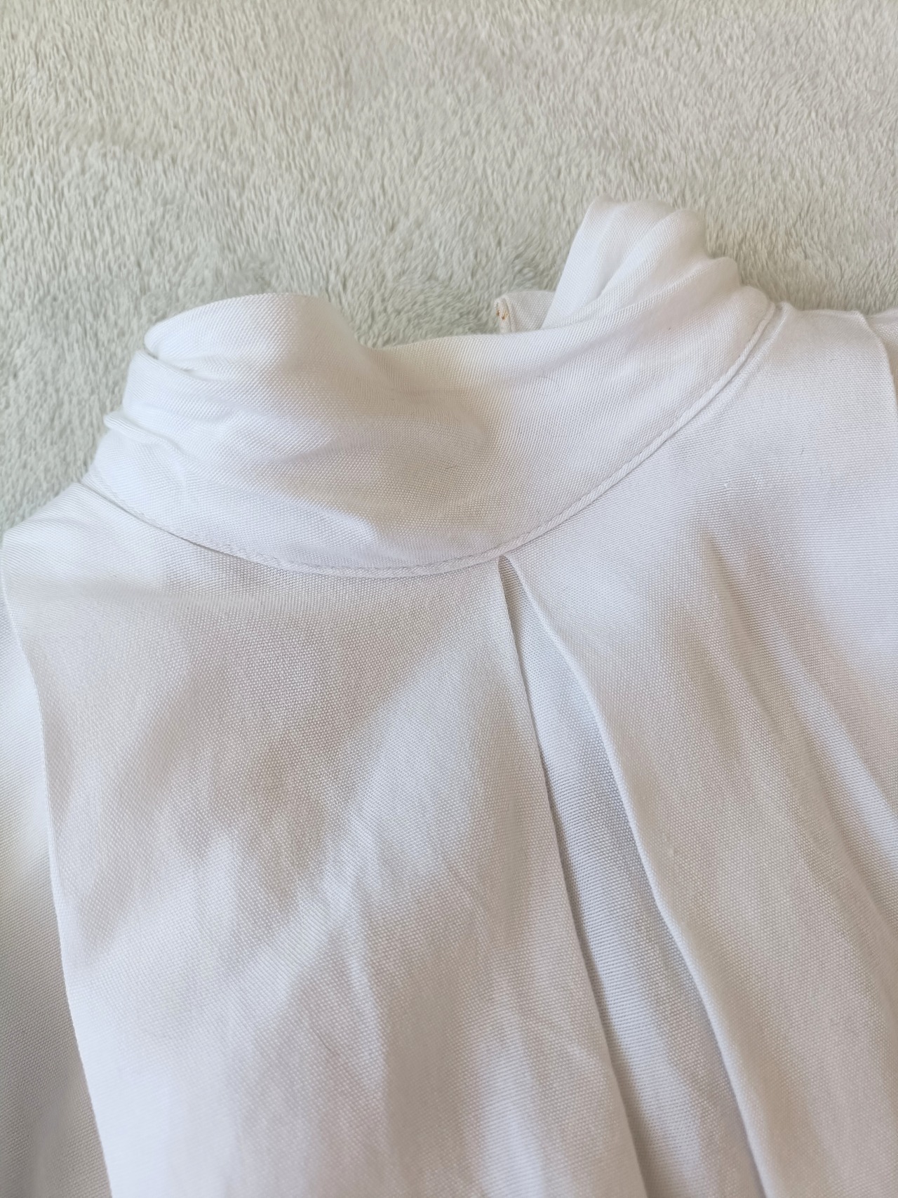 着用してみたところ首周りをきっちり締めようとするとかなり苦しかったのでリメイクし、紐を付けました。