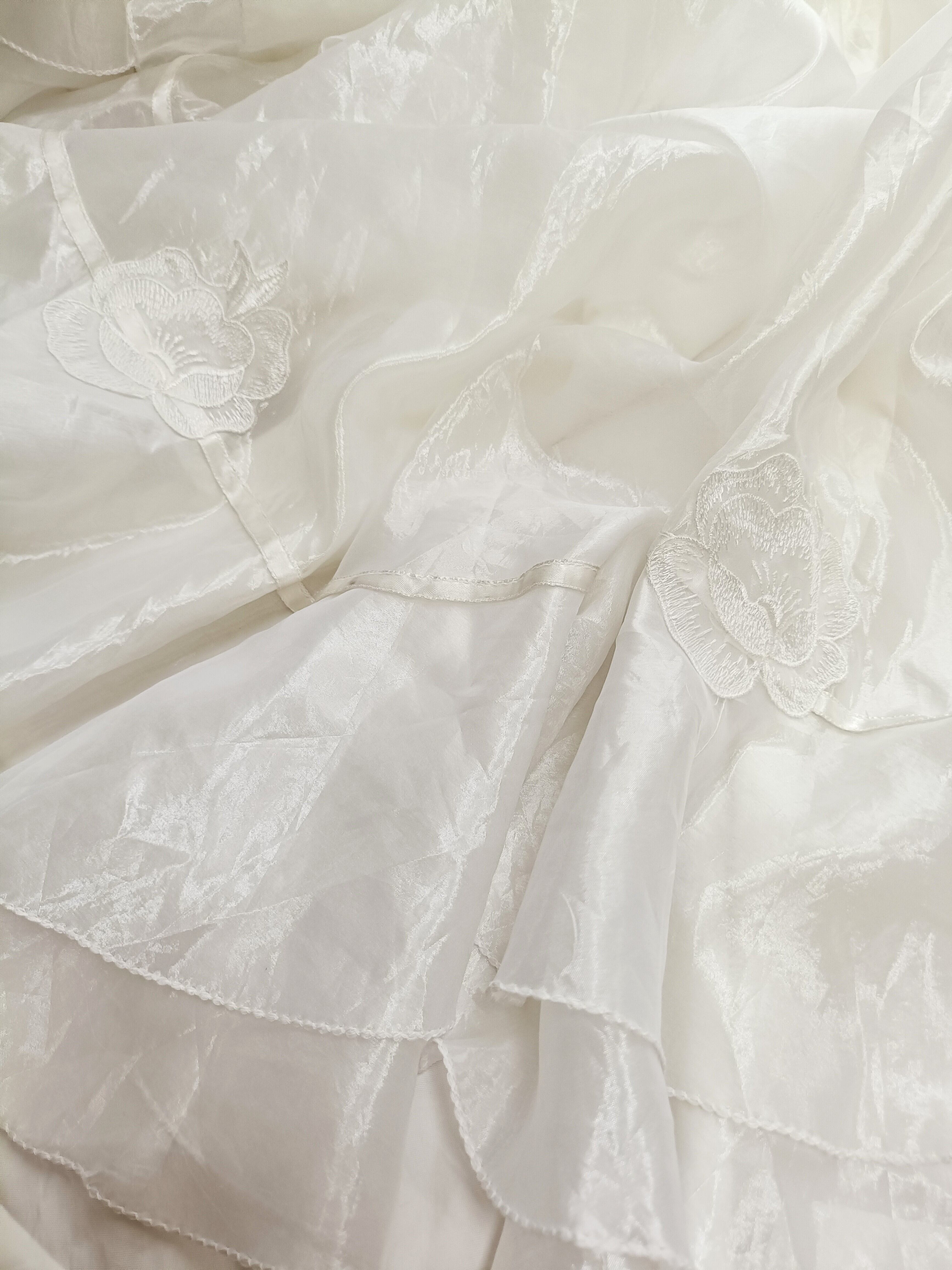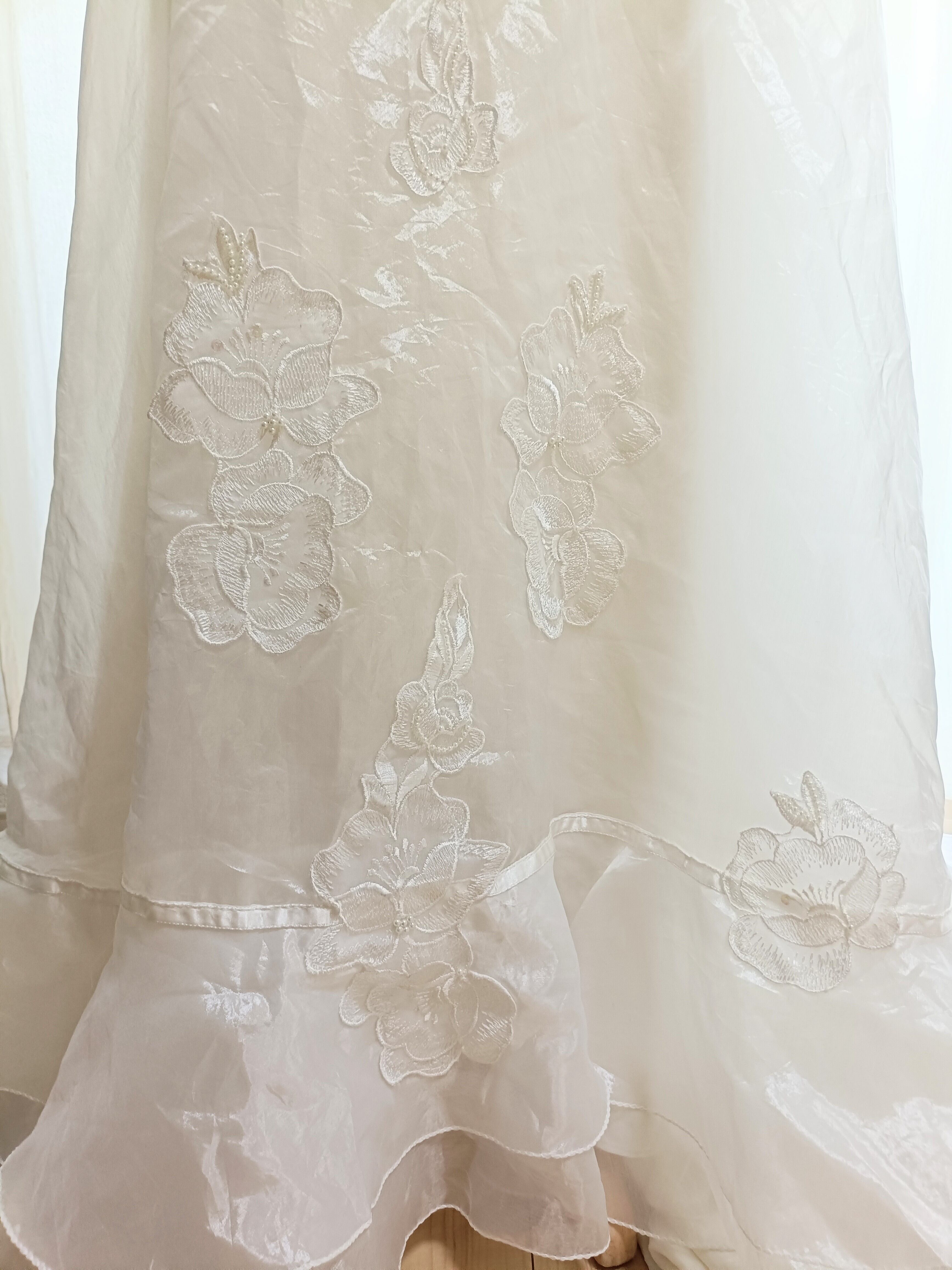 【コンディション】B 裾に汚れあります。オーガンジーの裾端の破れの補修のため一部分の裾幅が狭くなっています。(補修済のため破れ部分はないです)