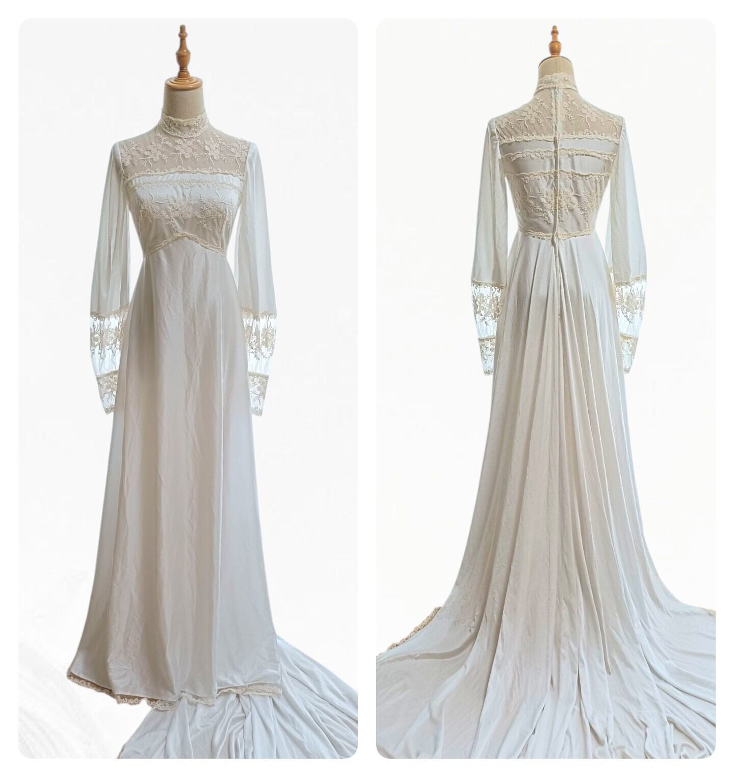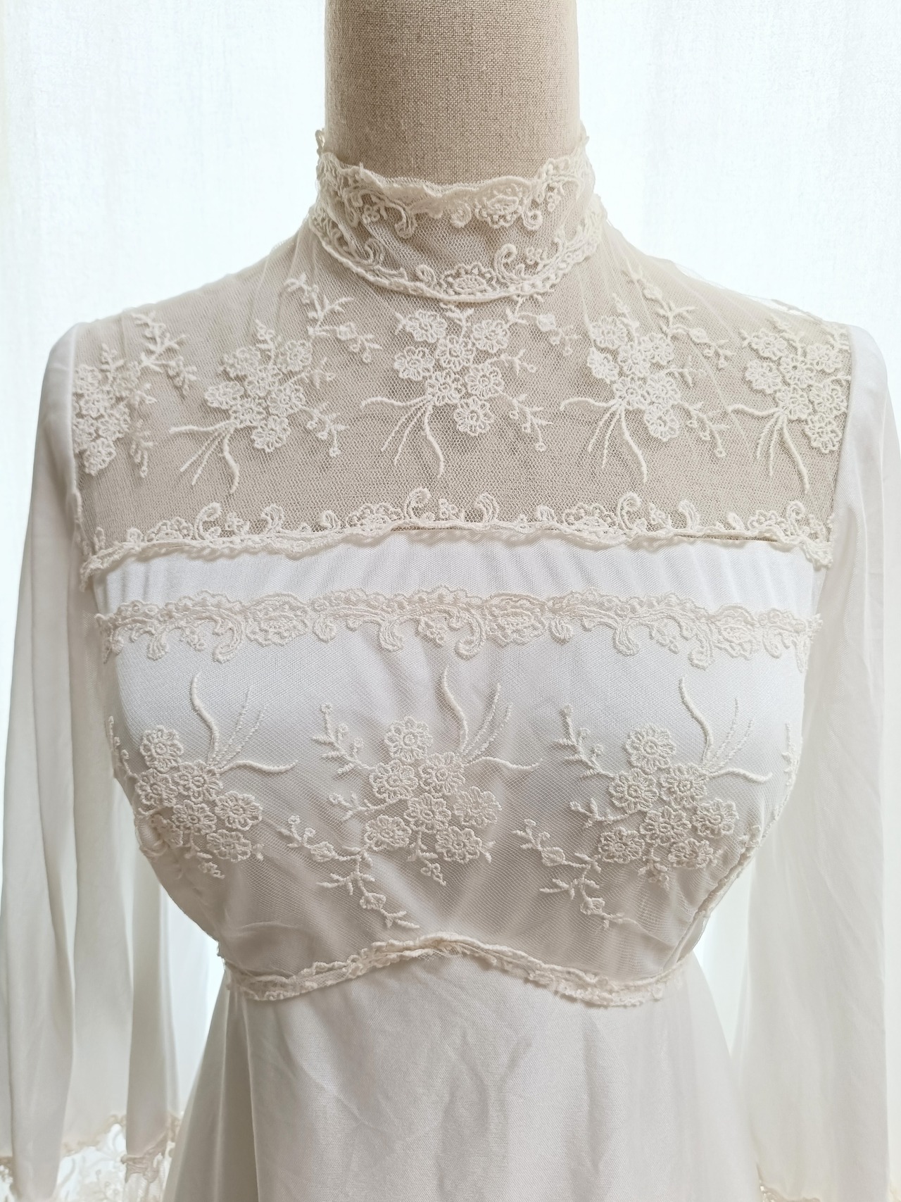 繊細なレースととろみのある生地感が美しい、1960〜70年代ヴィンテージウェディングドレス。