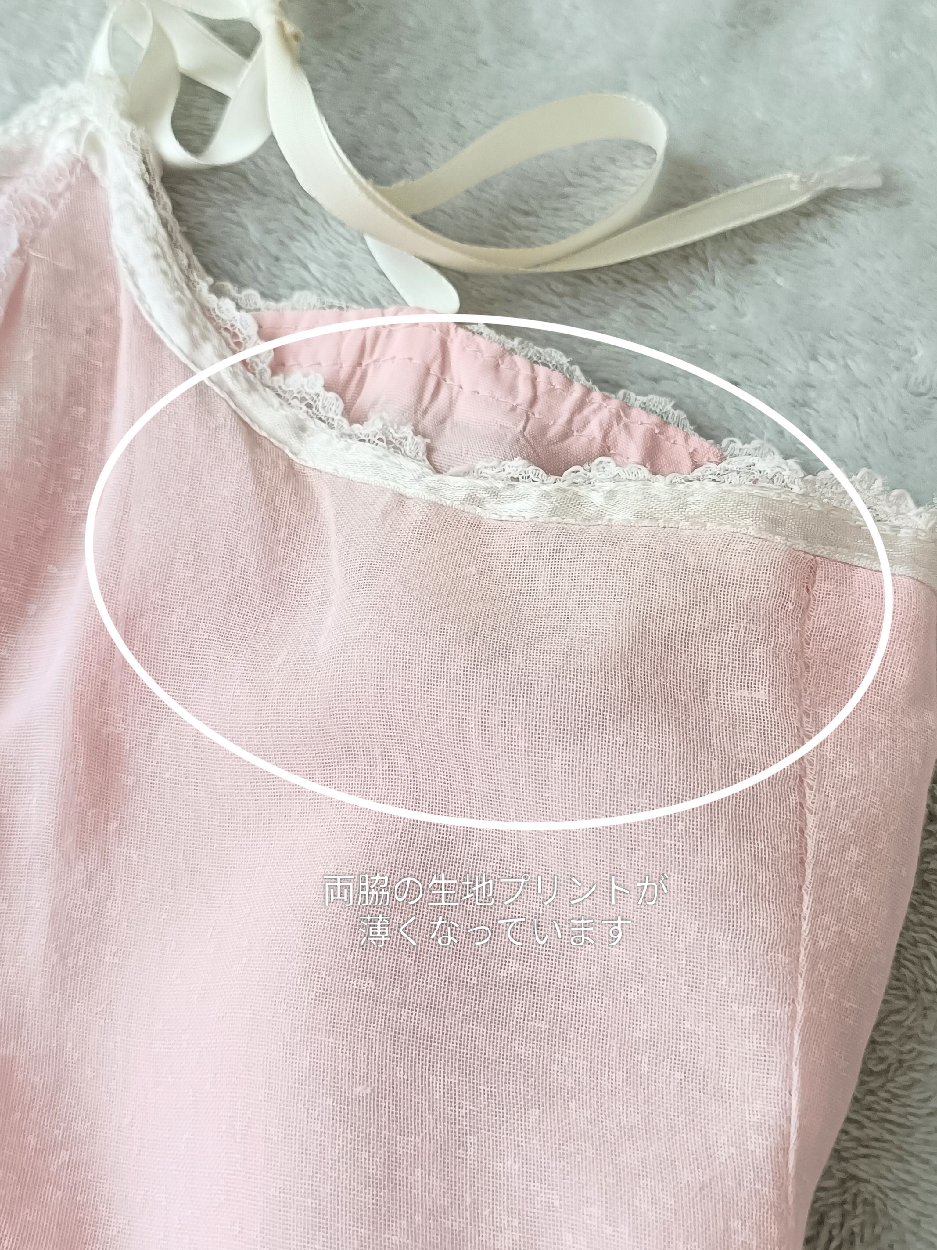 ピンク地にホワイトの小花柄テキスタイル、フリルとレースが可愛いキャミワンピです♡