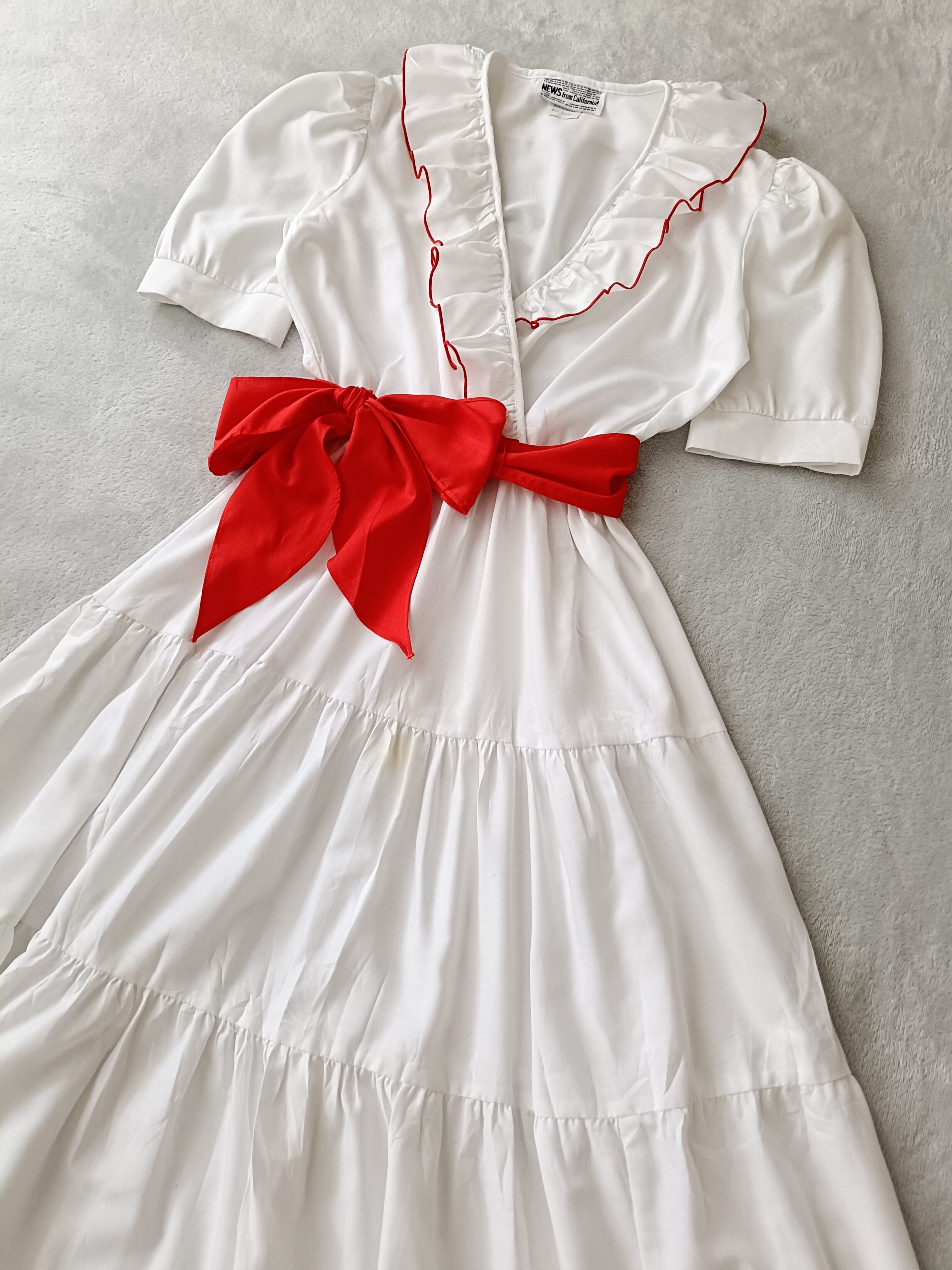 真っ白に赤のメローとリボン、ボタンがキュート♡