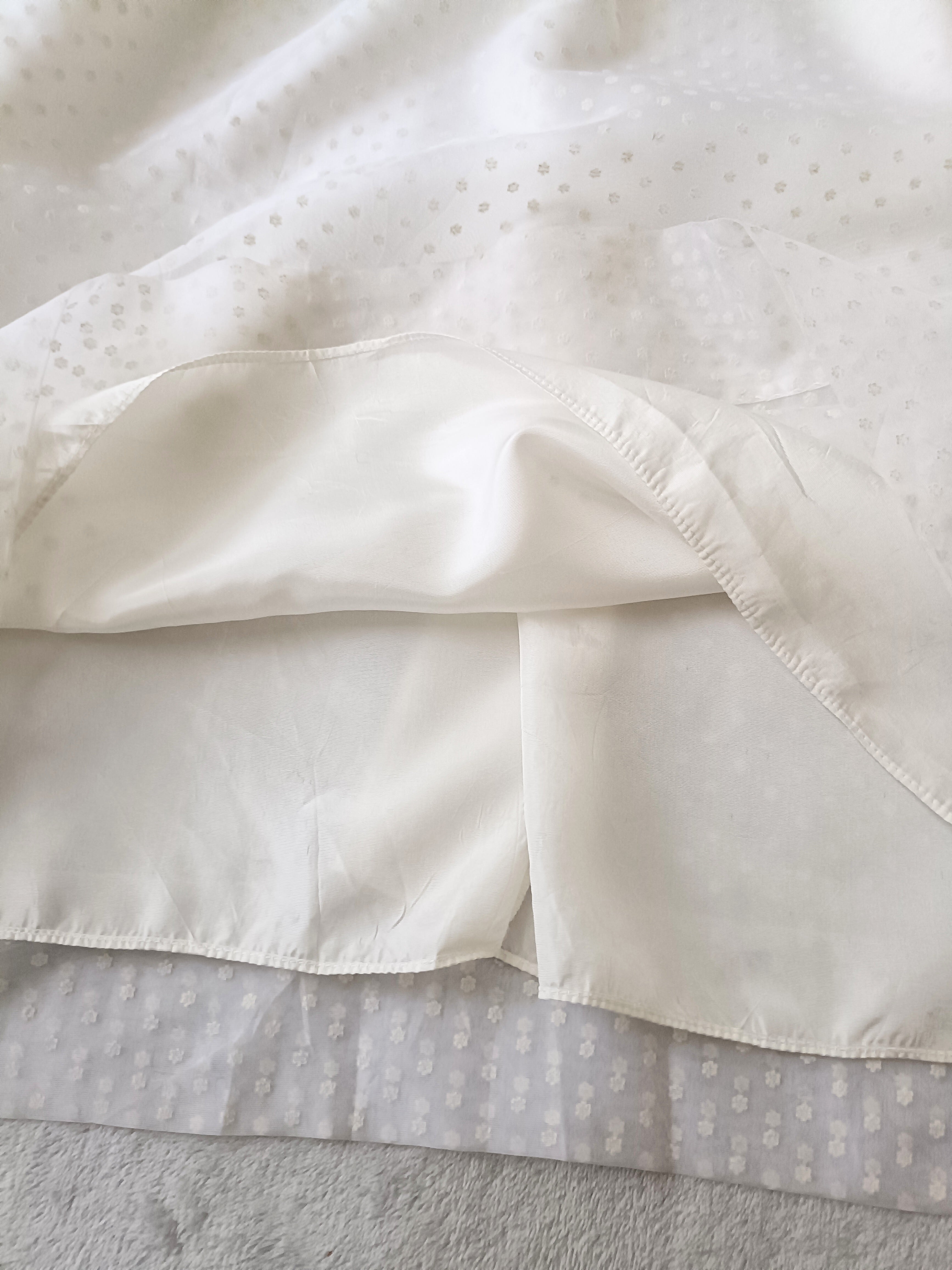 フロッキー加工のドット柄のシフォン生地とヴィンテージなアメリカ古着らしいデザイン◎ウエスト後ろはゴムになっています。