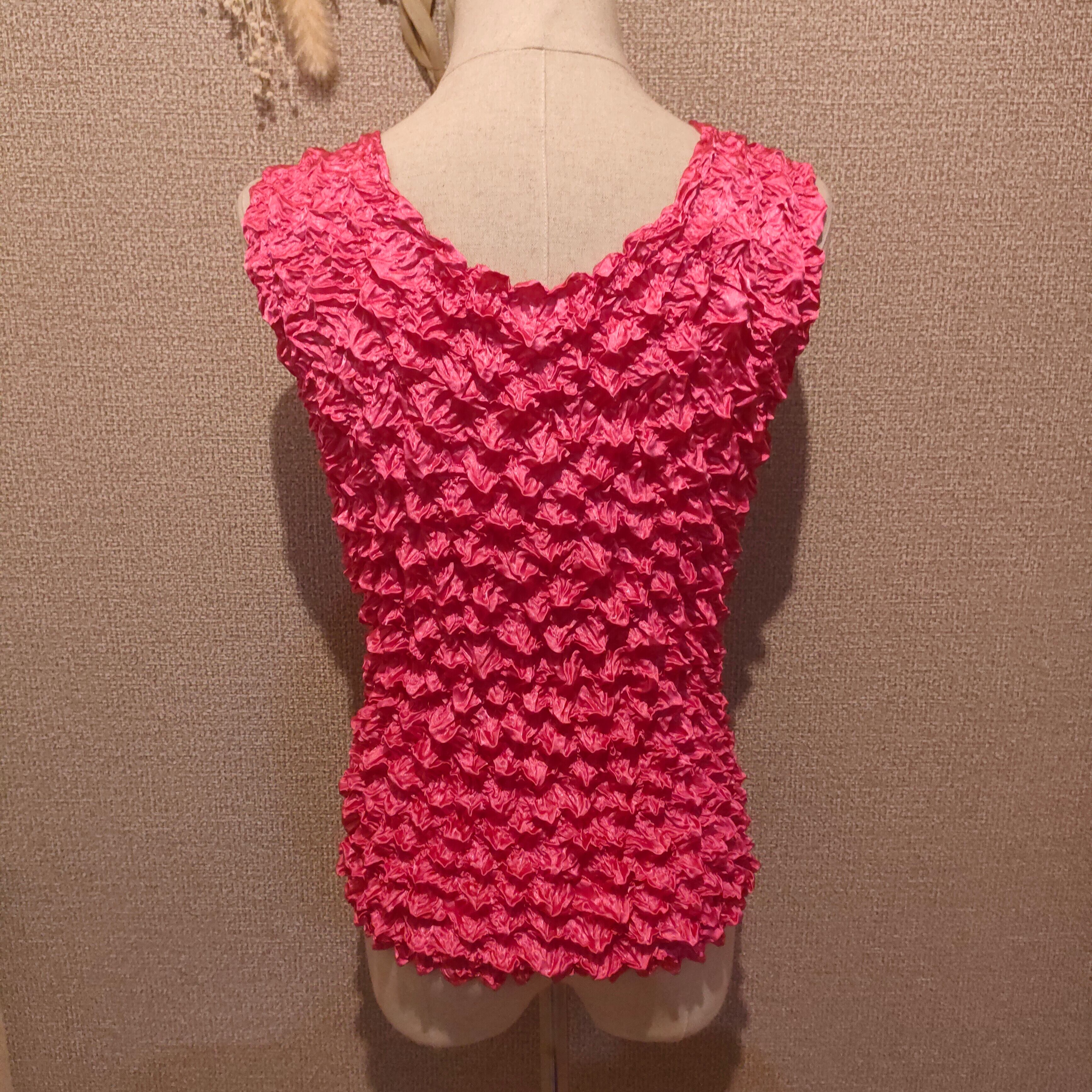 50's 60's 70's 80's 90's 古着 ヴィンテージ vintage ビンテージ used フランス ヨーロッパ アメリカ 下北沢 高円寺 吉祥寺 中目黒 古着女子 レトロ retro ブラウス blouse ハイネック プルオーバー ピンク 無地 三浦絞り 絞りTシャツ ポップコーン ぽこぽこ