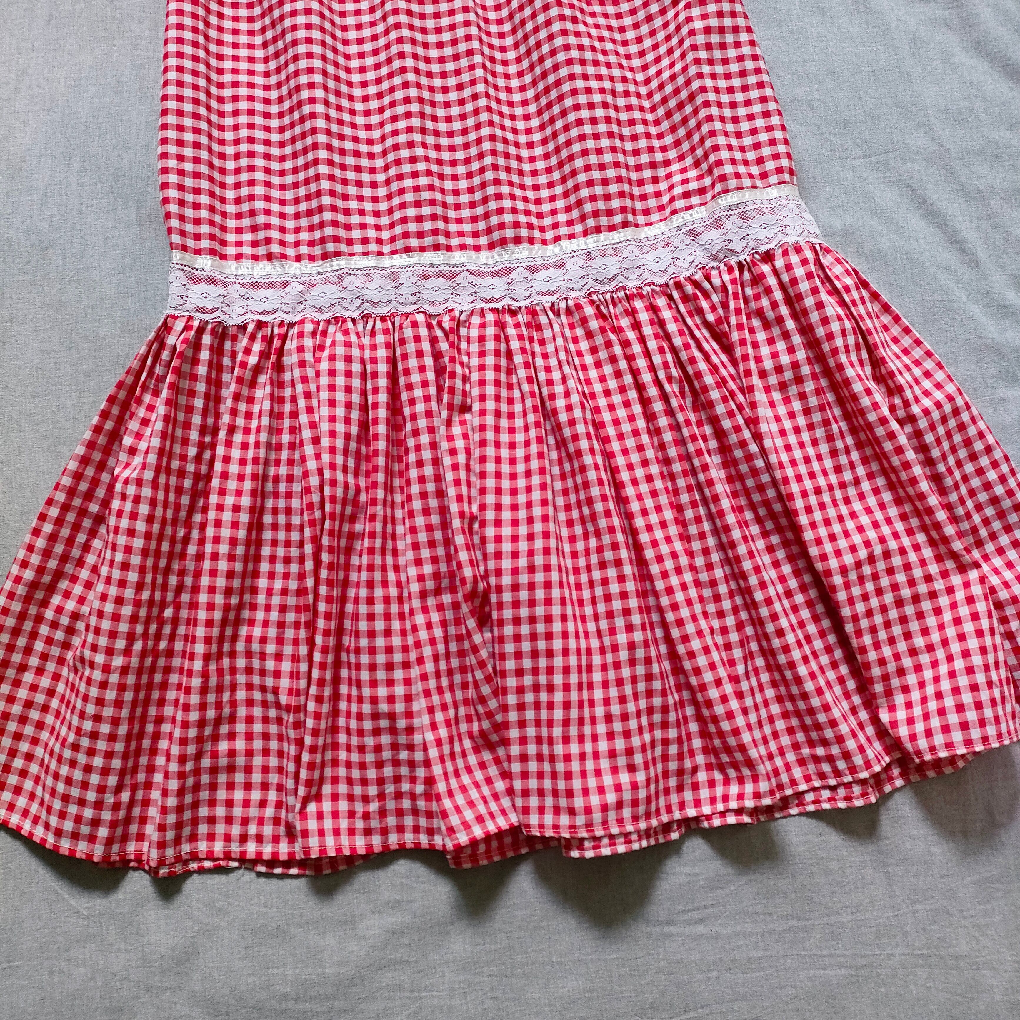 ・赤のギンガムチェック柄で愛らしく、心惹かれるおおよそ70年代頃のドレスです。おそらくハンドメイドのお品になると思われます。