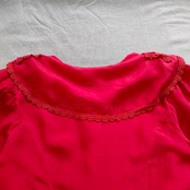 ・真っ赤なカラーとセーラーカラーがとっても印象的でかわいいブラウスです♡襟には刺繍、袖には一部分がレースになっており、ウエスト部分のタックと後ろのペプラムがくびれを作ってくれてキレイなシルエットです✦